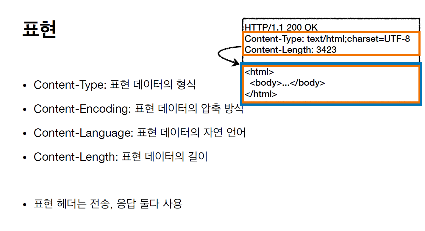 - 메시지본문(페이로드)의 데이터의 형식 압축방식 자연언어 데이터길이 등 이 모든 것들을 표현이라함.