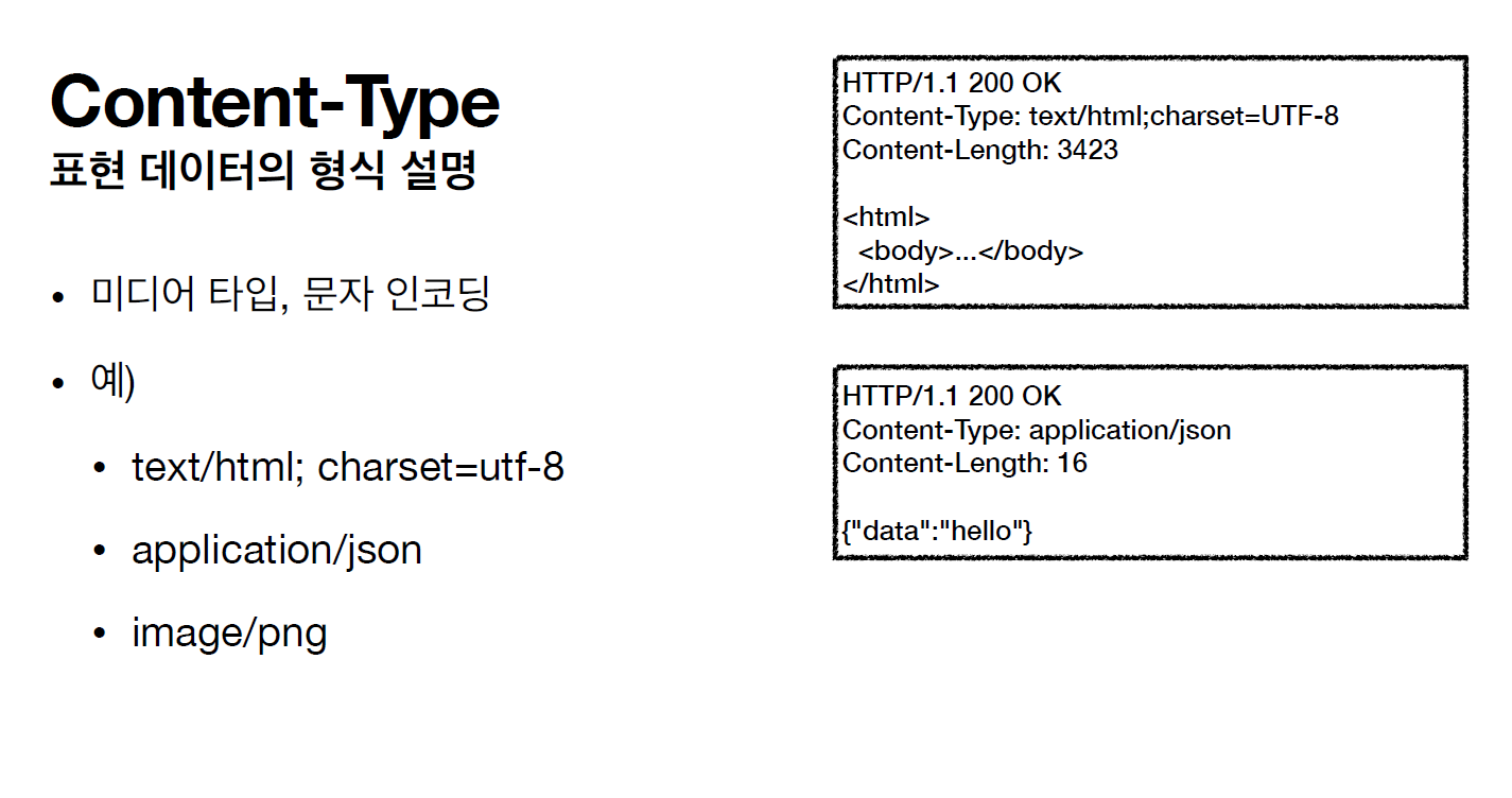 - 엔티티의 본문이 html, json 등 여러가지 일 수 있어서 엔티티 헤더에 어떤 데이터인지 명시해 주는 것