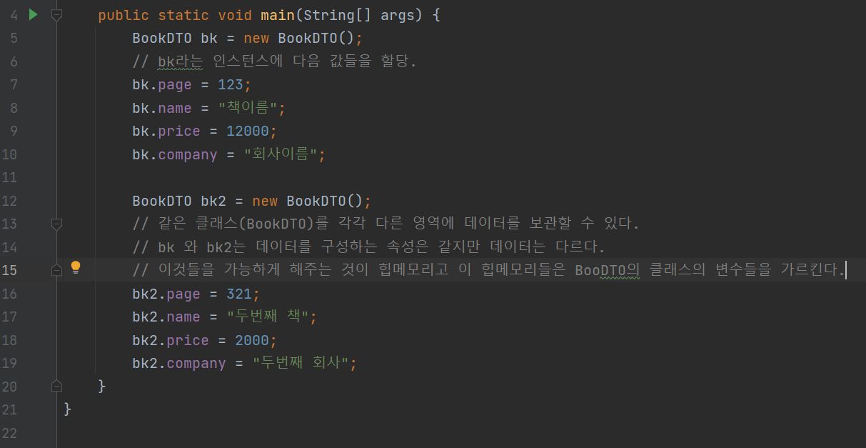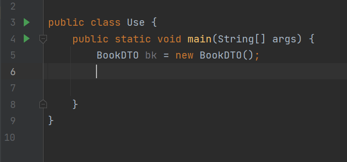 위 처럼 BookDTO라는 클래스가 있습니다. 이 클래스를 사용하기 위해서 위에서 말한 인스턴스화가 필요합니다.