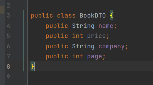 위의 사진을보면 BookDTO에 정의되어있는 변수 public String name 이 있습니다.