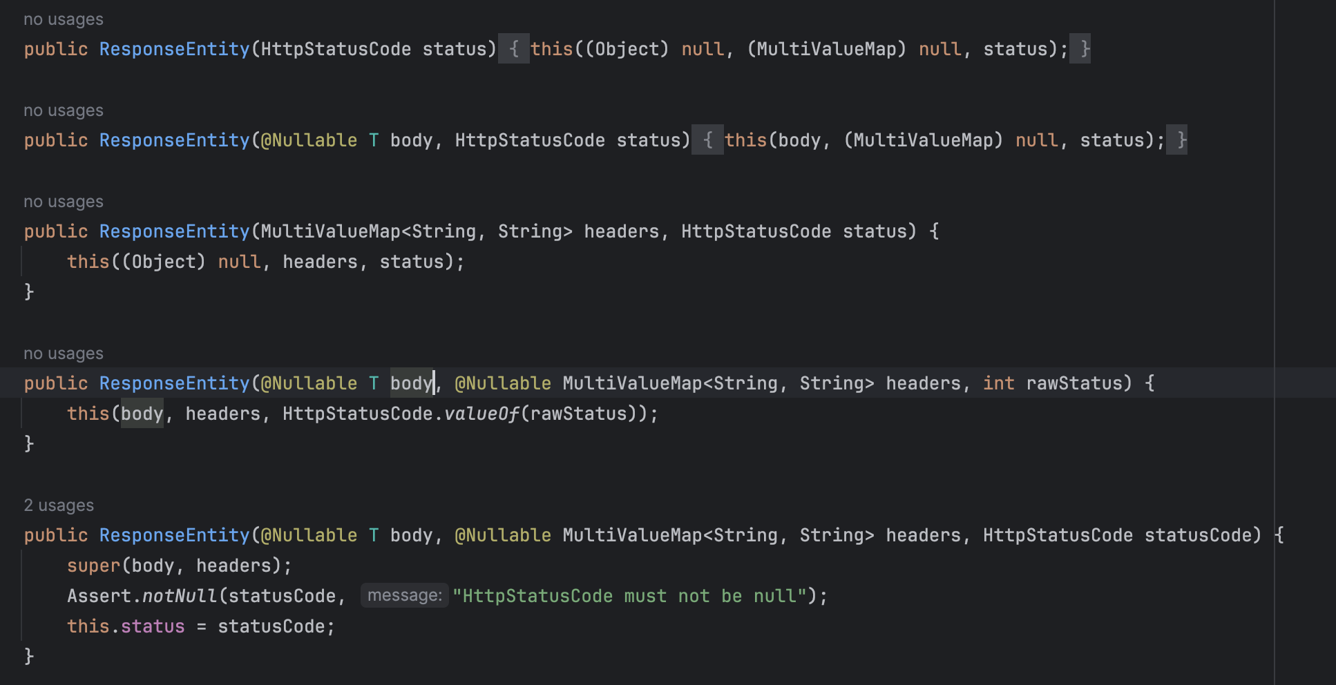 ResponseEntity의 코드를 까보니 body, header, statueCode 순으로 생성자가 구성되어 있는걸 볼 수 있습니다.