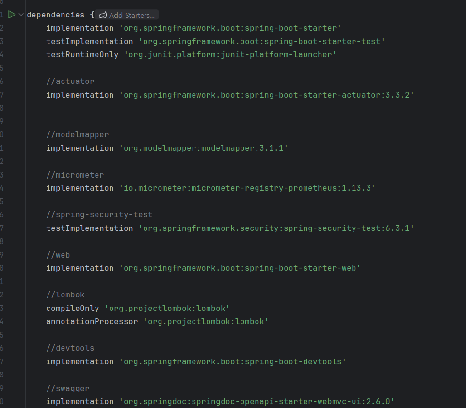 하지만 나의 프로젝트는 단일프로젝트였기에 그냥 api가 아닌 compileOnly로 설정되어 있던 것이다. 롬복은 런타임에서는 필요없고, 컴파일할 때만 필요하기에 Implementation가 아닌 compileOnly로 설정되어 있다.