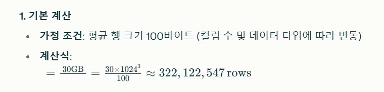 30GB의 용량이면 데이터 3억건은 넣을 수 있다는 계산이 나왔습니다.