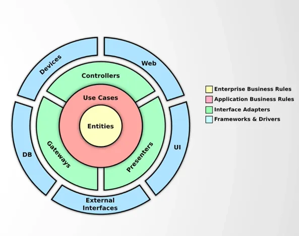 - Frameworks & Drivers(프레임워크와 드라이버) -> 가장 바깥쪽, 기술적 세부사항이 위치