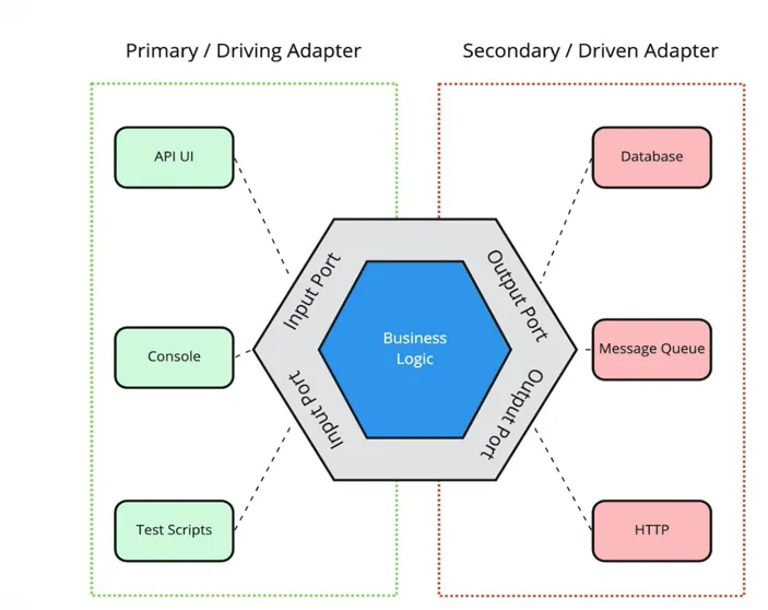 - Driving Adapter 주요 어댑터 -> API, UI., 콘솔, 테스트 스크립트 같은 사용자 입력
