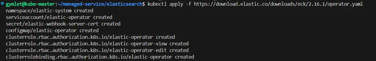 kubectl apply -f https://download.elastic.co/downloads/eck/2.16.1/operator.yaml